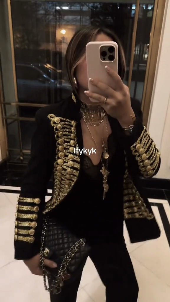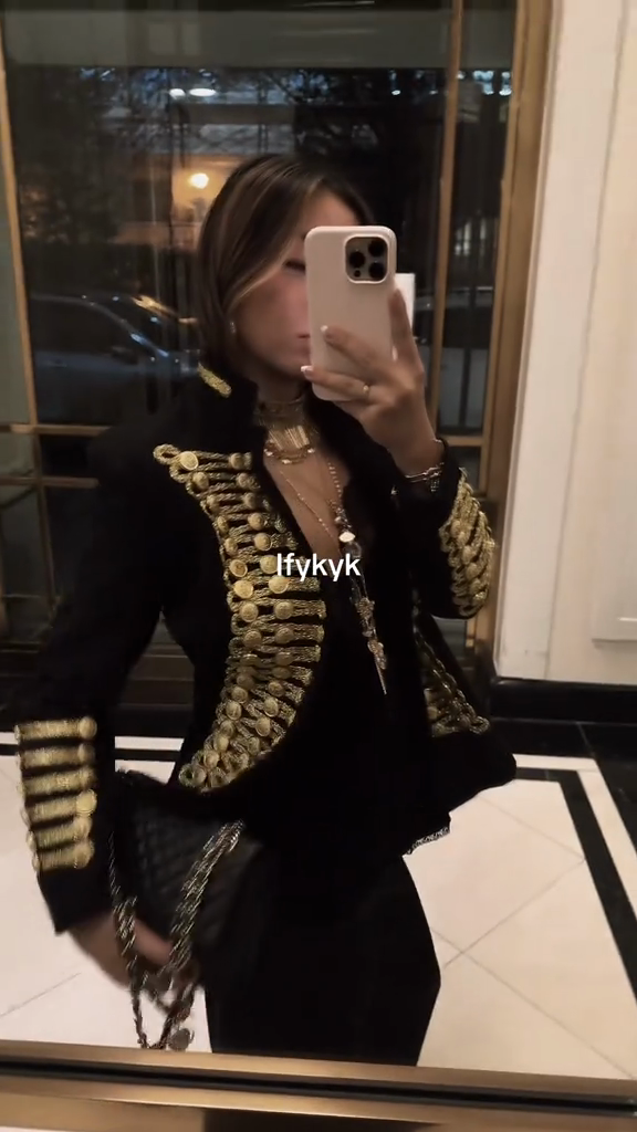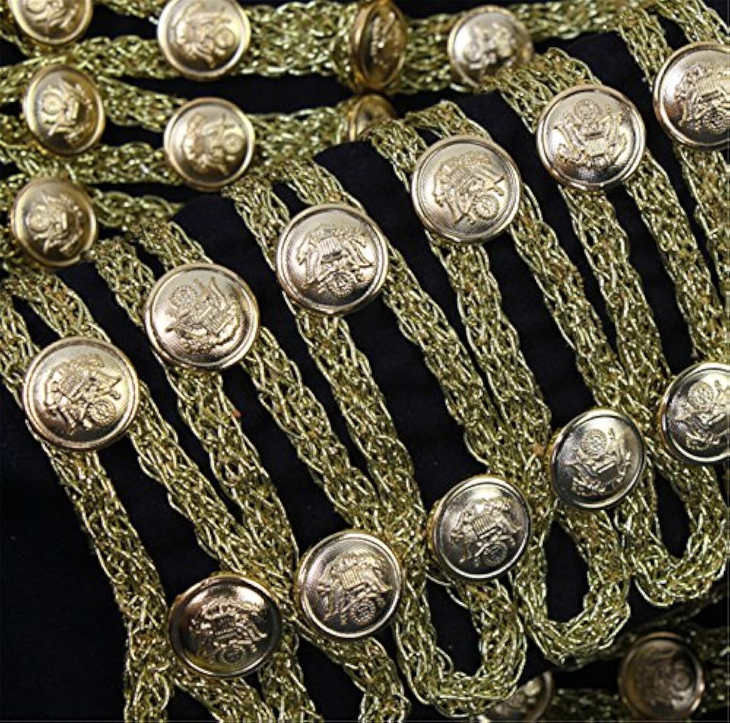 • Feature: Elaborate gold embellishments for a regal look, military - inspired design for a bold style